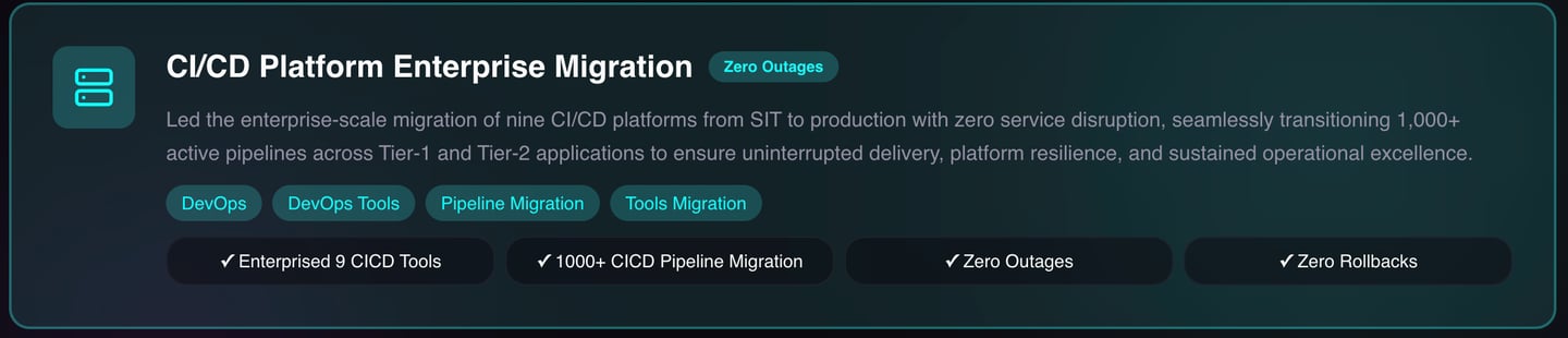 With 20+ years of experience, I am a C-suite–exposed leader driving DevOps, DevSecOps, SRE, Cloud, and Release Engineering practices adoption and transformations.