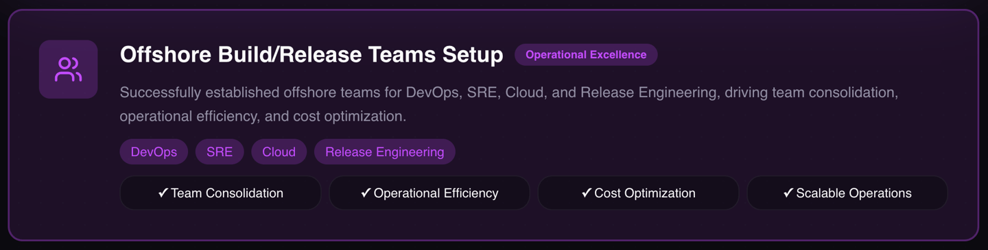Global Team Builder: Built and scaled high-performing DevOps, SRE, Cloud, and Release Engineering teams across the globe.